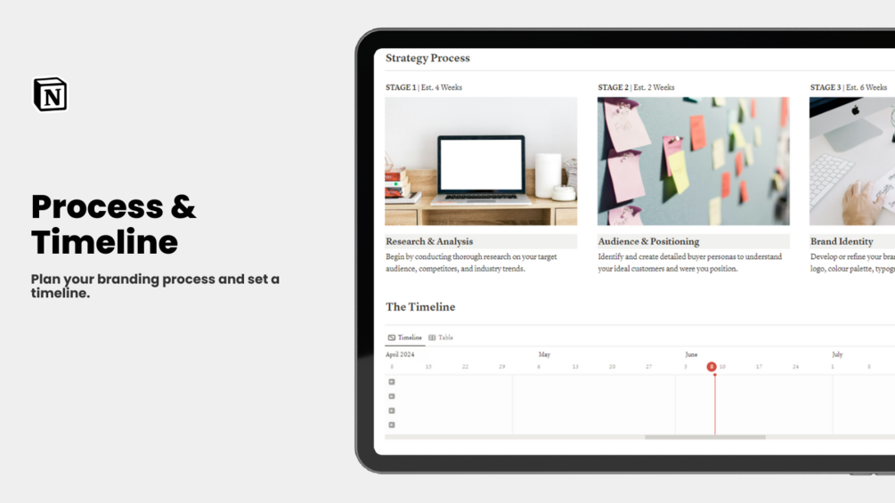 - Process & Timeline: Plan your branding process and set a timeline.