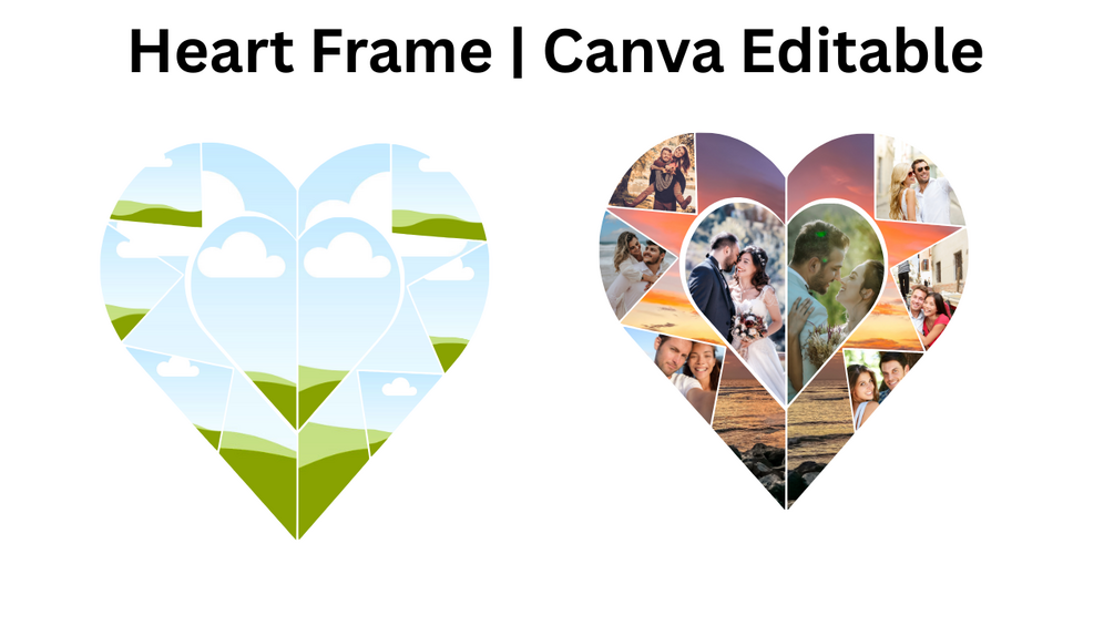 Heart Photo Collage Frame Templates | Canva Editable | Wedding, Anniversary, Valentine’s Day, Engagement Gift, Printable Wall Art