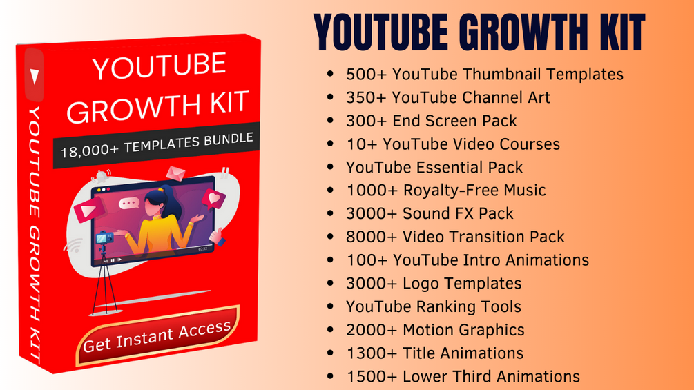 Transform your YouTube channel with the YouTube Growth Kit – 18,000+ Templates Bundle. Whether you're a beginner or a seasoned creator, this bundle has everything you need to produce high-quality content, grow your audience, and achieve your YouTube goals. Get started today and watch your channel thrive!